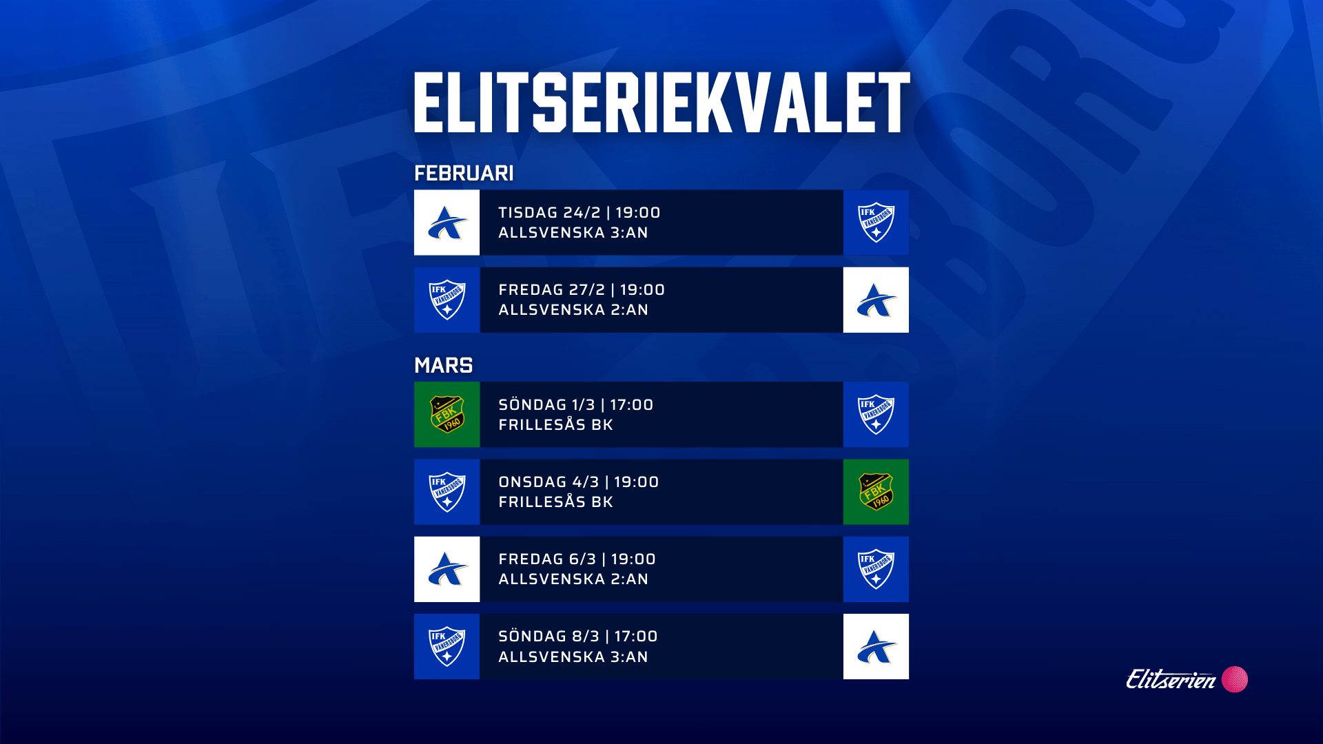 Tisdag 24/2 kl 19:00 – Allsvenska 3:an vs IFK Vänersborg